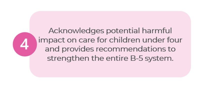 To achieve that goal, the Roadmap recommends ensuring funding could be accessed by more community-based providers and creating a home-based early learning provider pilot that would allow existing home-based providers a new pathway to participate in the PreK For All program.