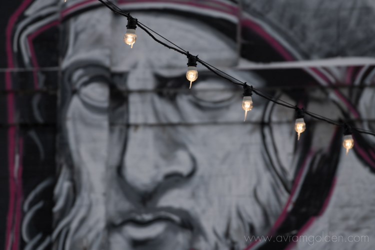Strings of light bulbs criss-cross above the street, creating a canopy of light that illuminates the block at night. Walking under the lights feels like magic, and that is just what the Star Bridge’s visionary, Avram Golden, was hoping to create.