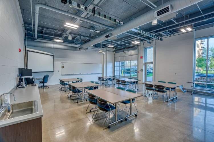 So, what about the spaces themselves? You know, the classrooms, the corridors? Design of these spaces has evolved significantly. In addition to considering the impact of daylight and materials, how the spaces function and how instruction is given is changing at a rate never before seen. Less often are we calling them classrooms. Today they are referred to as learning studios. The idea of a classroom only set up for lecture-style teaching is becoming obsolete. Today’s learning studios are flexible spaces that allow for small and large group work with integrated technology. Teachers and students need the ability to share and present from anywhere in the room. And corridor spaces are evolving beyond just a place to traverse from class to class and stop at a locker on the way. They now incorporate shared breakout spaces that allow for further adaptive use both during and between classes.
