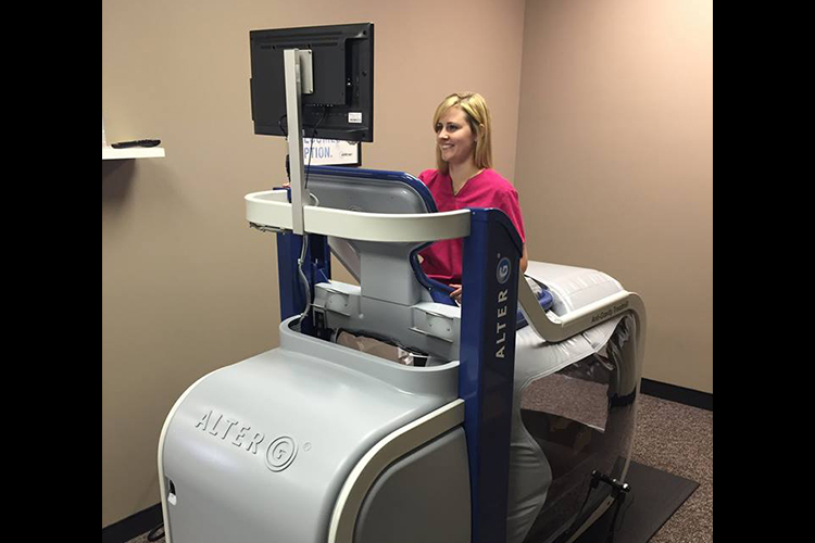 “The AlterG has allowed me to be able to run pain-free. I have back problems and running outside or on a regular treadmill is nearly impossible. The AlterG allows me to take some of the pressure from constant pounding off my back which in return allows me to run and get the same great workout in as running on regular ground.” says Katie Norton, the office manager at Auburn PT.