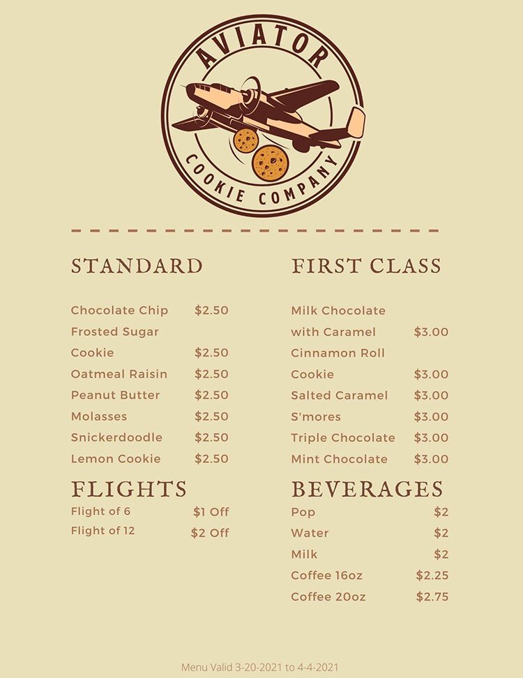 Aviator Cookie Company is cleared for liftoff this Saturday, March 20 from noon-5 p.m. They’re located at 230 E. Main St., between Heather & Holly and Pizza Baker.