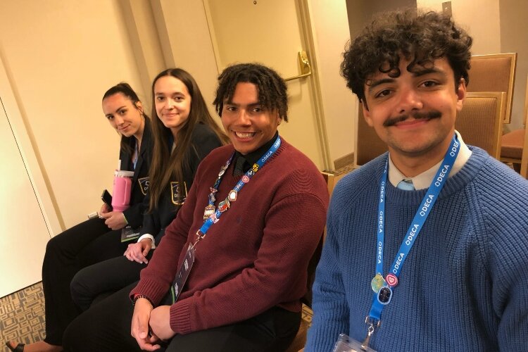 Dereon Campbell, Marin Arnold, Isaiah Ciesla, and Olivia Maurer are the DECA students from the Career Center who competed at the April 27-30 conference. All four are in the Marketing & Management program.