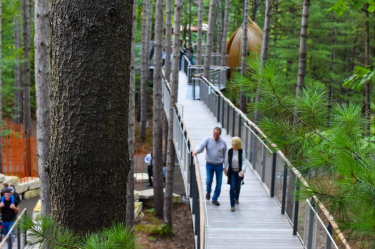 Another trail that starts at the Tridge takes you to the Chippewa Nature Center (CNC), southwest of downtown. It’s a 4.1-mile ride on the Chippewa Trail to the CNC. When you arrive, check out the visitor center and its exhibits or explore the center’s 1,500 acres and its many trails, the Homestead Farm, wigwam, schoolhouse, and sugar house. The CNC sits along the Chippewa and Pine Rivers. There’s no admission fee unless you sign up for a specific program.
