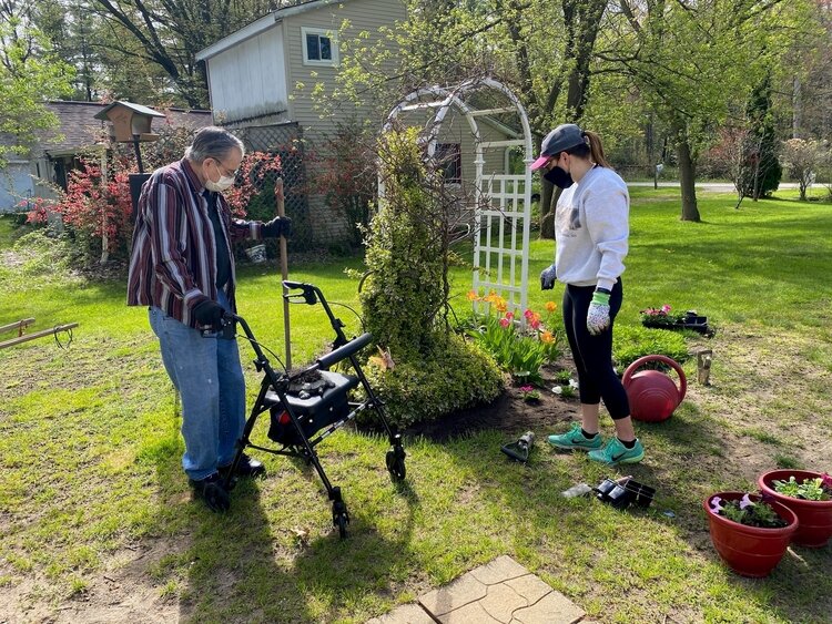 Kayla Susko, a planting volunteer, bonded with her Be My Neighbor recipient over their shared love of rhubarb and the resident gave Susko several stalks as a thank you, to which she promised to return with a rhubarb pie.