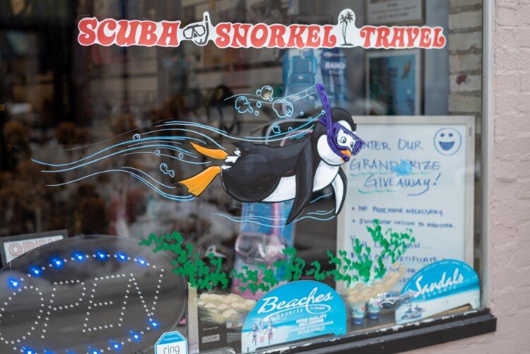 Businesses were offered the opportunity to sign up to have The Brush Monkeys visit and Thiefels offered ideas for each window concept. “We’ve been developing an aesthetic for years now so we have a consistency with the designs. I consulted with each individual business and gave them a menu of ideas they could choose from. And of course, we aim to highlight the local attributes of each individual business.”