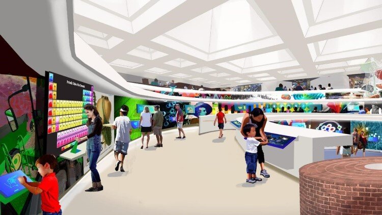 - A new centralized main entry and lobby space with multi-level views into the interactive museum exhibits. Redesigned, modern activity spaces throughout the center will allow for community gatherings, meetings and celebrations.