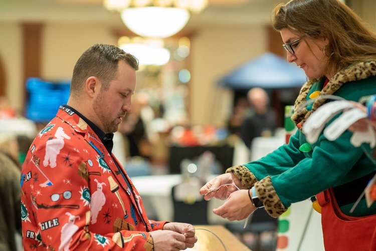 This year’s event featured more raffles, a silent auction and many other contests – and it got ugly. Each year, the group keeps the event lighthearted and encourages attendees to wear their ugliest sweater or holiday outfit creation.