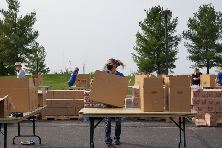 Corteva also supported this gap within the community through an event titled ‘Corteva Fills Pantries’. Over 100 employees came out for a day of volunteering to pack 1,000 boxes or ‘Pantry Packs’ with 40 pounds of nonperishable food for people and families in need. Pallets on top of pallets stacked up on modular conveyor belts in a safe and socially distant fashion, all right from the back lot of Dow Diamond.