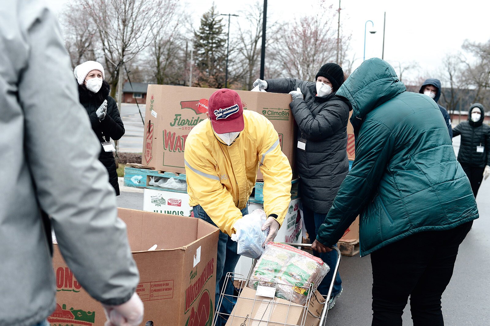 “They put their lives and health at risk every day, serving people, … filling boxes, loading trucks, distributing to people in lines of cars miles long,” Knight says. “[We’re] watching people who, a minute ago, didn’t have enough food and now, all of a sudden, they have cheese, fresh vegetables, and shelf-stable items. When I watch that relief wash over them, listen to them say ‘Thank you,’ those are the golden moments.”