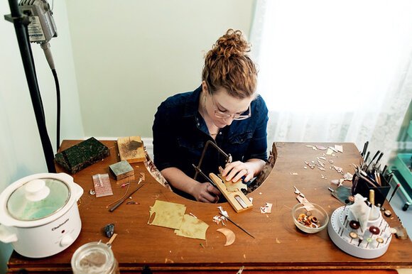 McIlvenna began metalworking just out of college back in 2012. She took some classes and workshops while living in Kalamazoo, and held jewelry making close as a hobby. As she committed more time and resources to her growing hobby, she named it Delirious Blue in 2013.