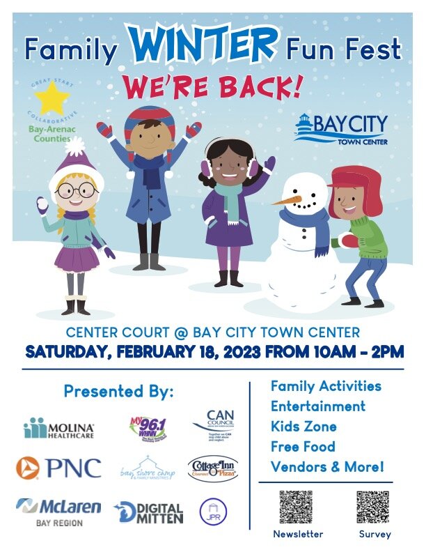 For a good time, take the kids out to the Family Winter Fun Fest at the Bay City Town Center on Sat., Feb. 18 from 10 a.m. to 2 p.m. The event is part of the Bay-Arenac Great Start Collaborative.
