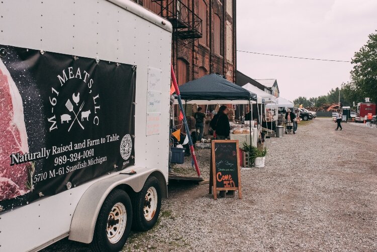 The Bay Area Farmers Market takes place outside The Jefferson Project, 409 First St. Vendors set up tents and tables near outdoor murals and the Bay City Sculpture Park and Garden.