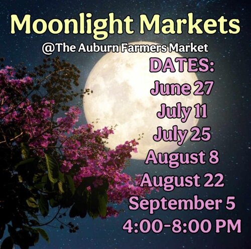The Auburn Farmers Market, located in the Auburn Park Pavilion, celebrates its seventh year today. The Auburn market is open from 2 to 6 p.m. Thursdays beginning June 19. Its Moonlight Market operates on alternating Fridays from 4 to 8 p.m. beginning June 27.