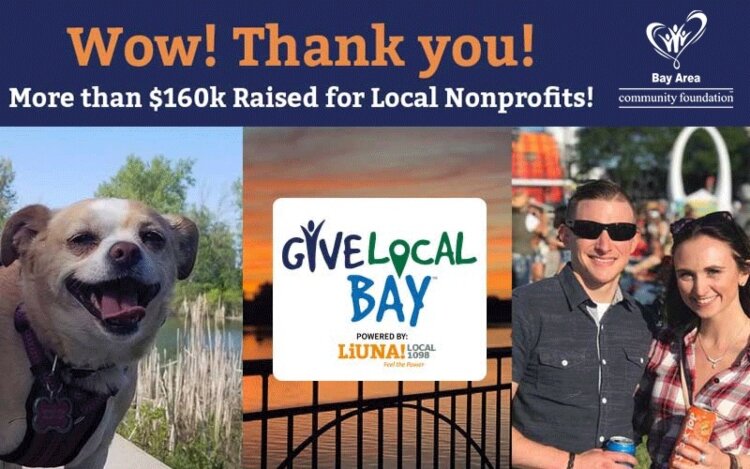 In all, people donated more than $132,000 to the Give Local Bay event on May 4. Sponsors kicked in additional money as prizes, raising the one-day total to $161,000.