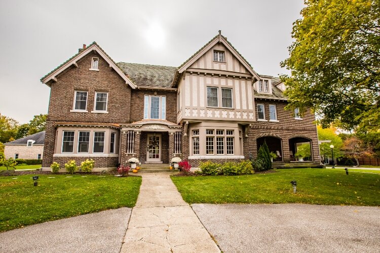 Built in 1912 with a Tudor Revival architectural style, the home holds over 30 rooms consisting of six bedrooms, seven bathrooms, and six fireplaces. The square footage of the home is debated, but when factoring in all three floors, the home is approximately 9,000 square feet.