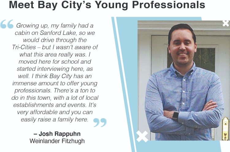 Josh Rappuhn is a certified public accountant and manager at Weinlander Fitzhugh Certified Public Accounts & Consultants, 1600 Center Ave. Originally from Clarkston, Rappuhn moved to the area to attend college. After graduating from Saginaw Valley State University, Rappuhn chose to stay in the area and start his family here. Rappuhn and his wife, Taylor, welcomed their first child, Rhemi Jaymes, on July 5th. At 30 years old, Rappuhn is heavily involved in the community, serving as the Chairman of Bay Area Energize program. He enjoys traveling with his wife and trying different restaurants across the state.
