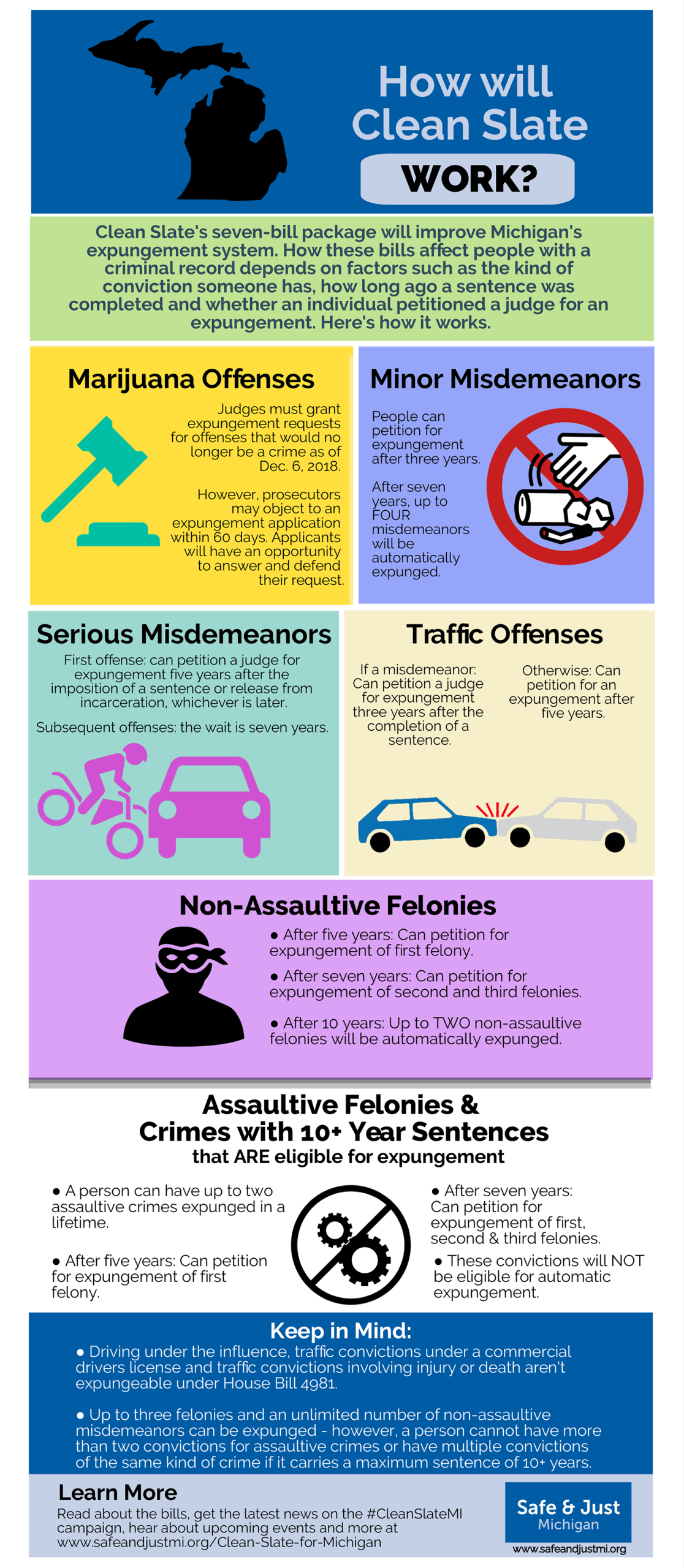 Click here for more information on the State of Michigan’s criminal record expungement process.