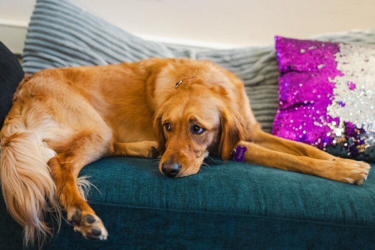 Loiselle and Pippa work out of a first-floor classroom, not far from the main office. The room is filled with couches, bean bag chairs, posters, dog treats, and dog toys as well as traditional school furniture.
