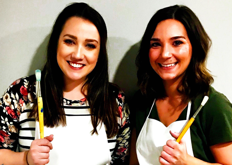 Marie Jeffrey and Melissa Schalk of Mobile Masterpiece bring canvas, paints and instruction to locations that their clients choose.