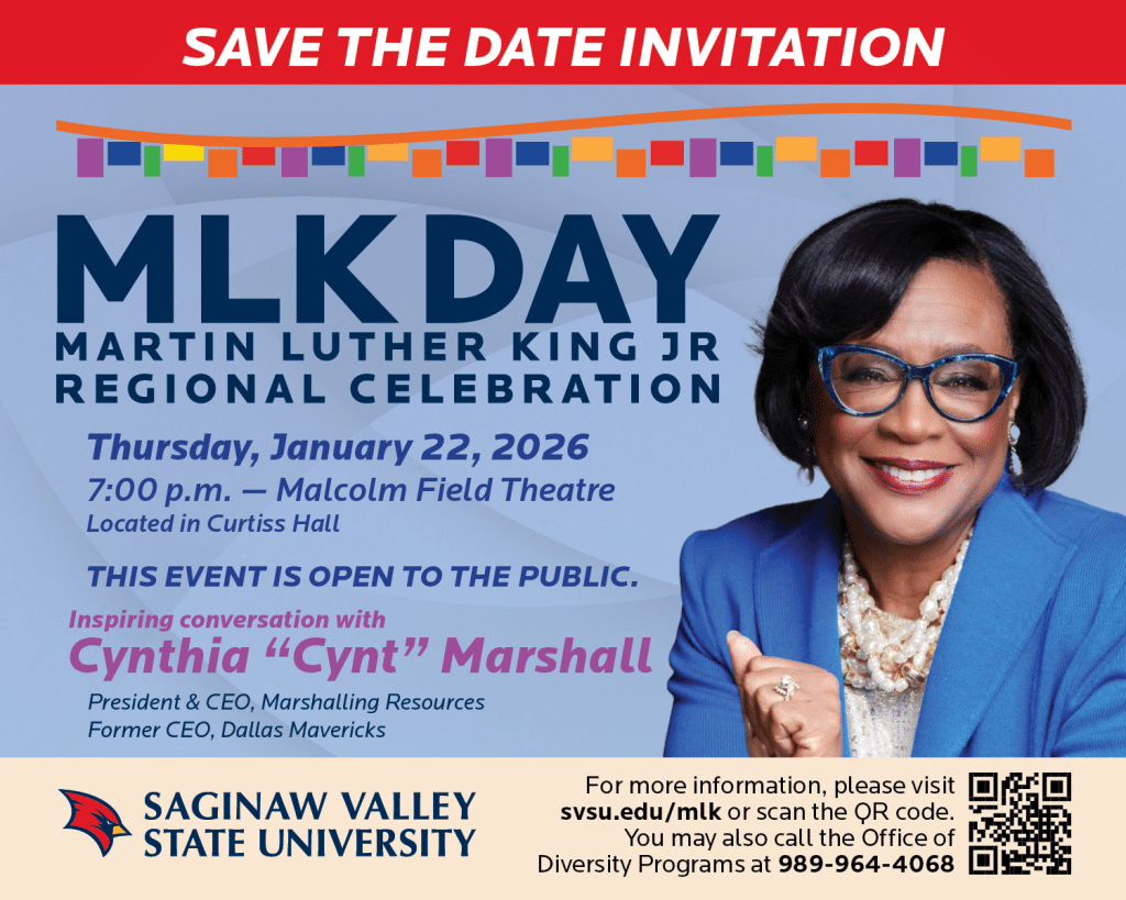 The 2026 Martin Luther King Jr. Regional Celebration takes place at 7 p.m. Thurs., Jan. 22 at Saginaw Valley State University’s Curtiss Hall. The celebration is a partnership between SVSU, regional businesses, chambers of commerce, and community foundations.