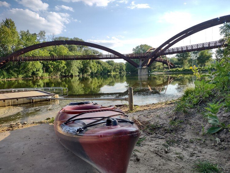 On the completion of the structures a decade ago the city posted this entry: “Three recently completed kayak /canoe launches, located at the Tridge in downtown Midland, Chippewa Nature Center and Sanford Lake Park, will allow universal access to our local waterways…All three launches will be open annually from May 1 through Oct.15 (weather permitting), with the hours of operation unique to each site.”