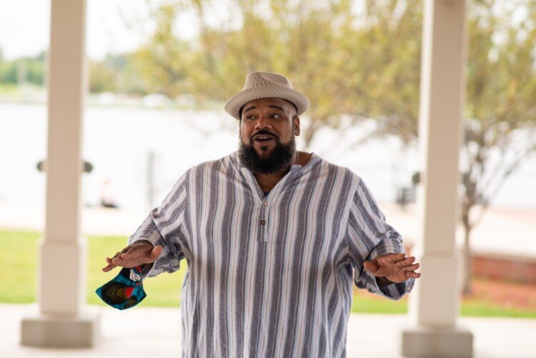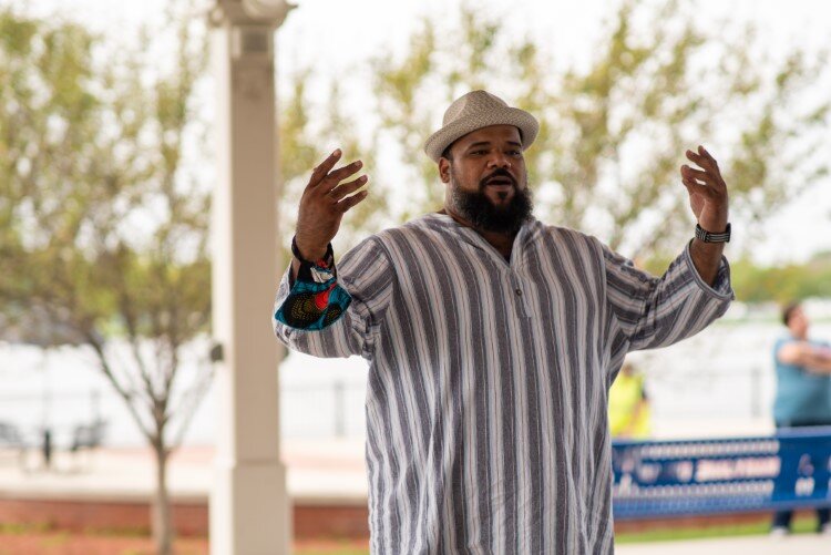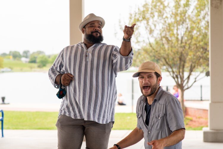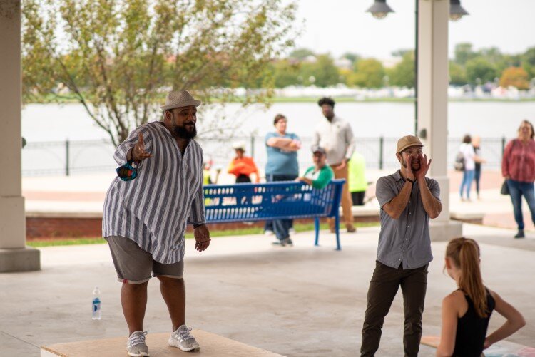 While only VanDenBoom and Blossey performed during the Wenonah Park event, both Katie Travis and her brother, Matt Travis, were part of the event. The siblings grew up in the area. Katie has performed as Christine, the Phantom’s love interest in a touring production of “The Phantom of the Opera.” Matt is the director of Choral and Orchestral Programs at the Midland Center for the Arts. Thad Van Tifflin, who serves as a Spark board member, also was at the park.