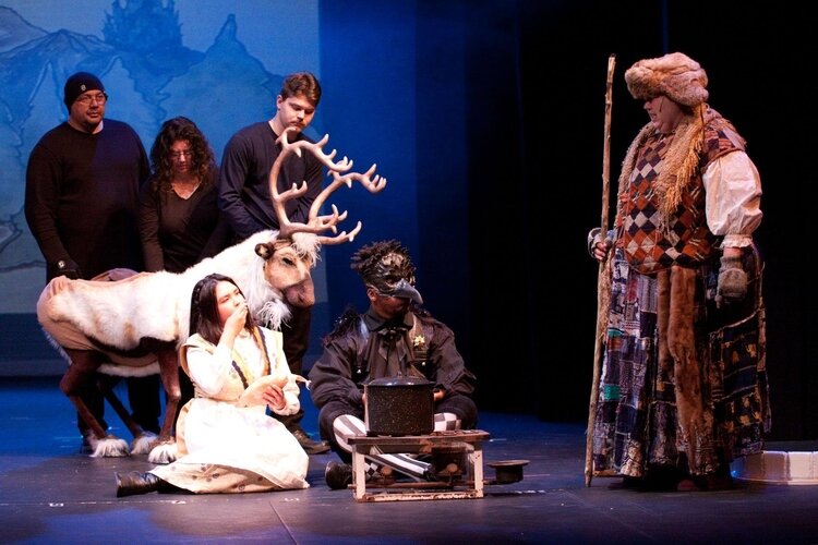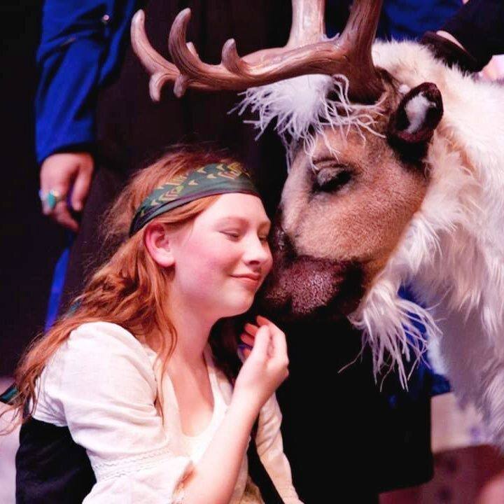 It takes three people to operate the reindeer puppet in the Bay City Players production of The Snow Queen, a fairy tale written by Hans Christian Andersen and the basis of the hit Disney movie Frozen.