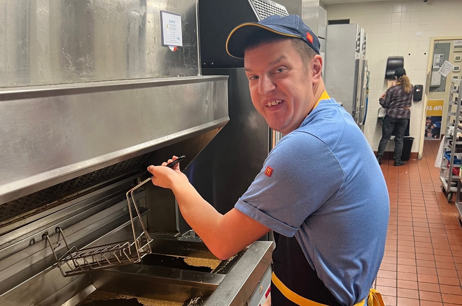 Throughout the process, from applying and interviewing at several different businesses to the day he got a job offer from McDonald’s, Bauer relied on his Job Development Specialist for support and guidance. The two talked and texted regularly as Bauer faced self-confidence issues while navigating the job market.