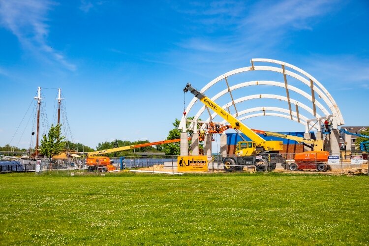 The project started in January when the original stage, built in 1981, was razed. The new outdoor amphitheater is the final piece of the waterfront project in Bay City’s Wenonah Park.
