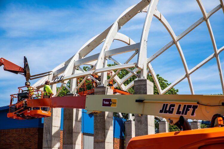The framework is in place and in a few short weeks, construction on the World Friendship Shell in Downtown Bay City should be done.